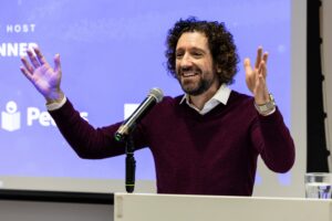 Greg gives his address at the School Library Association awards for Information Book of the Year 2025. Photo copyright of Adam Hollingworth